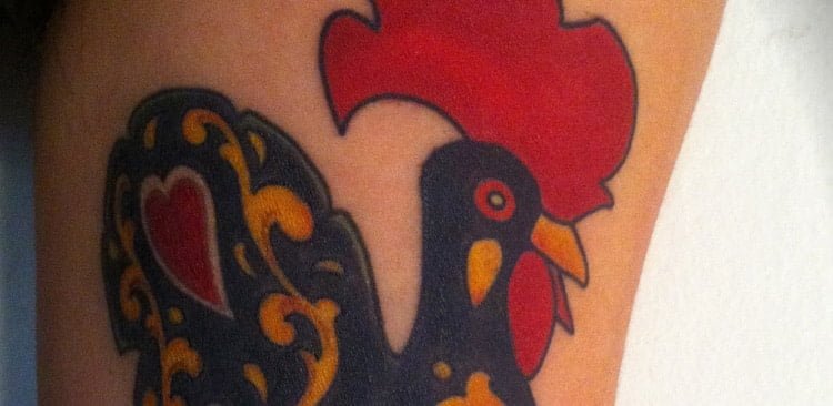 Adorei a nova tattoo. Minha família e meus amigos também. É um desenho diferente. Nas minhas pesquisas, só achei três pessoas com o Galo de Barcelos tatuado. O mérito para a tatuadora Akemi, do Estúdio Led’s, que criou o desenho na hora, fazendo detalhes personalizados para mim. O resultado final ficou super vivo e chamativo.